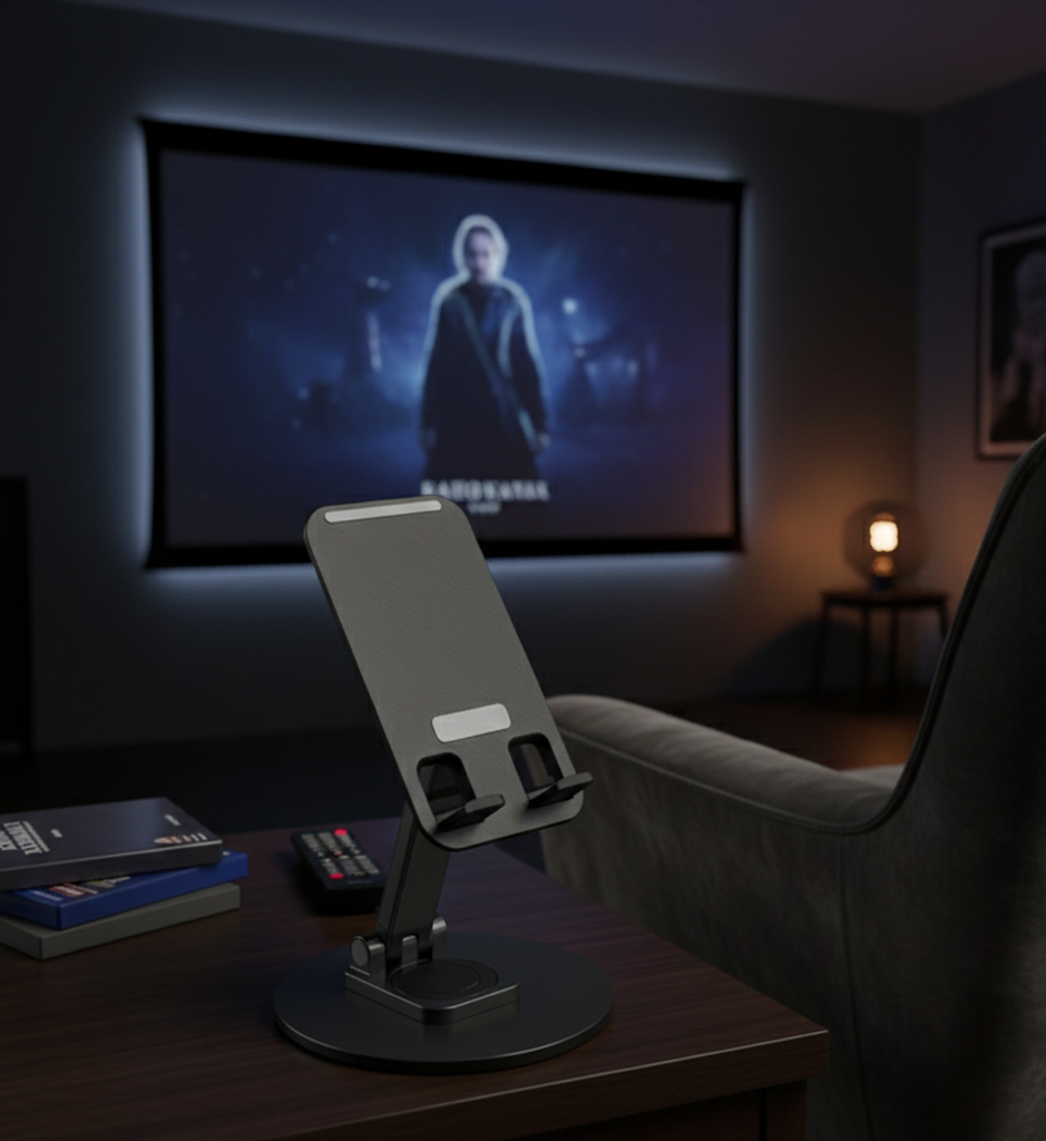 Elevate your viewing experience with our Sleek Matte Black Universal Adjustable Desktop Phone Stand. Designed with modern aesthetics and superior functionality, this versatile stand provides the perfect hands-free solution for your smartphone across multiple environments.